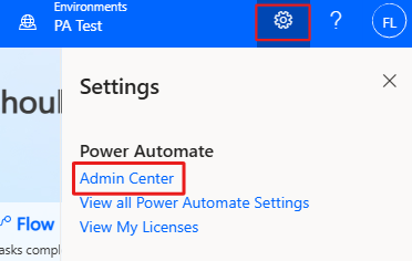 1. Trong Power Automate, nhấn biểu tượng dấu hỏi (?).